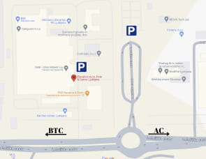 Do nas lahko dostopate z avtom, avtobusom ali carsharingom Avant2Go (Prva stran / Avant2Go), katerega parking je nasproti studia. Tudi za vaša kolesa je poskrbljeno, saj ga lahko priklenete na stojala za kolesa, na platformi nasproti studia.